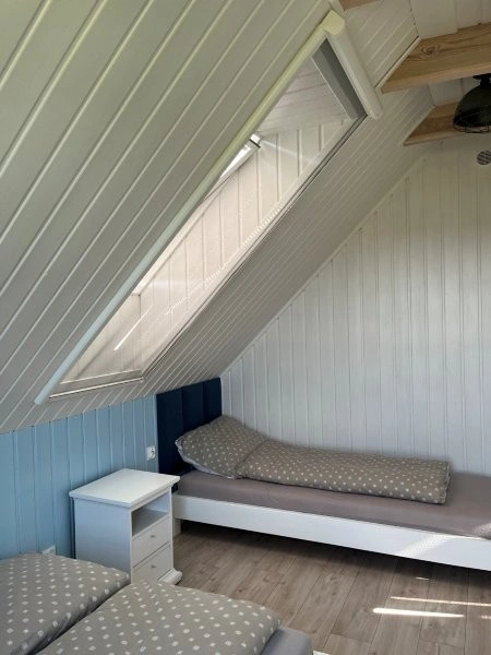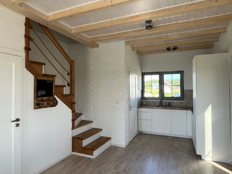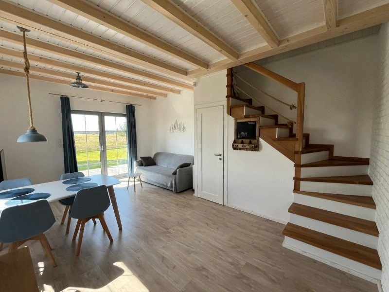 Do dyspozycji gości oferowane są trzy apartamenty w domu oraz mały domek jednorodzinny położony na dużej, zielonej działce. Wszystkie są dwupoziomowe – na dole znajduje się salon z aneksem kuchennym oraz łazienka, na piętrze są dwie sypialnie.